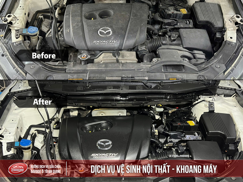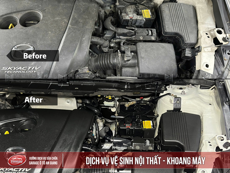 Khoang Máy: Loại bỏ cặn bẩn, dầu mỡ bám két, giúp tản nhiệt tốt hơn, các chi tiết điện tử hoạt động ổn định, tránh hư hỏng vặt, kéo dài tuổi thọ động cơ.