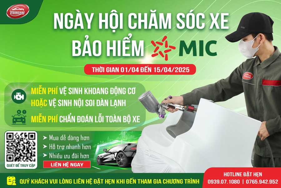 Tin “hot” cho các chủ xế yêu nhà MIC đây ạ! Từ ngày 01/04 đến 15/04/2025, MIC phối hợp cùng Garage Ô Tô An Giang tổ chức chương trình “Ngày hội chăm sóc xe” với những ưu đãi cực kỳ hấp dẫn mà bạn không thể bỏ qua: