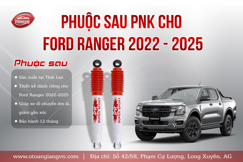 Phuộc Giảm Xóc Sau PNK Cho Ford Ranger 2022 – 2025 được sản xuất từ thương hiệu PNK nổi tiếng tại Thái Lan. Được thiết kế dành riêng cho dòng xe Mazda BT-50 2018-Nay, Phuộc giảm xóc sau PNK không chỉ lắp đặt nhanh chóng, dễ dàng, giúp tiết kiệm thời gian và giúp xe di chuyển êm ái, vững vàng trên từng hành trình. Phuộc Giảm Xóc Sau PNK Cho Ford Ranger 2022 – 2025 có độ bền cao do được làm từ thép cao cấp, kết hợp cùng dầu thủy lực đặc biệt giúp tản nhiệt tốt, tăng độ bền cùng với mức giá vô cùng phổ thông.